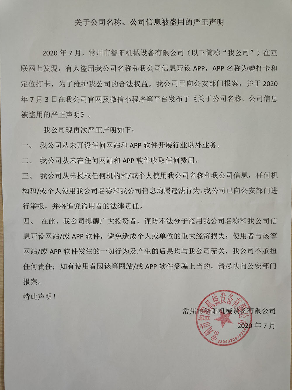 关于公司名称、公司信息被盗用的严正声明